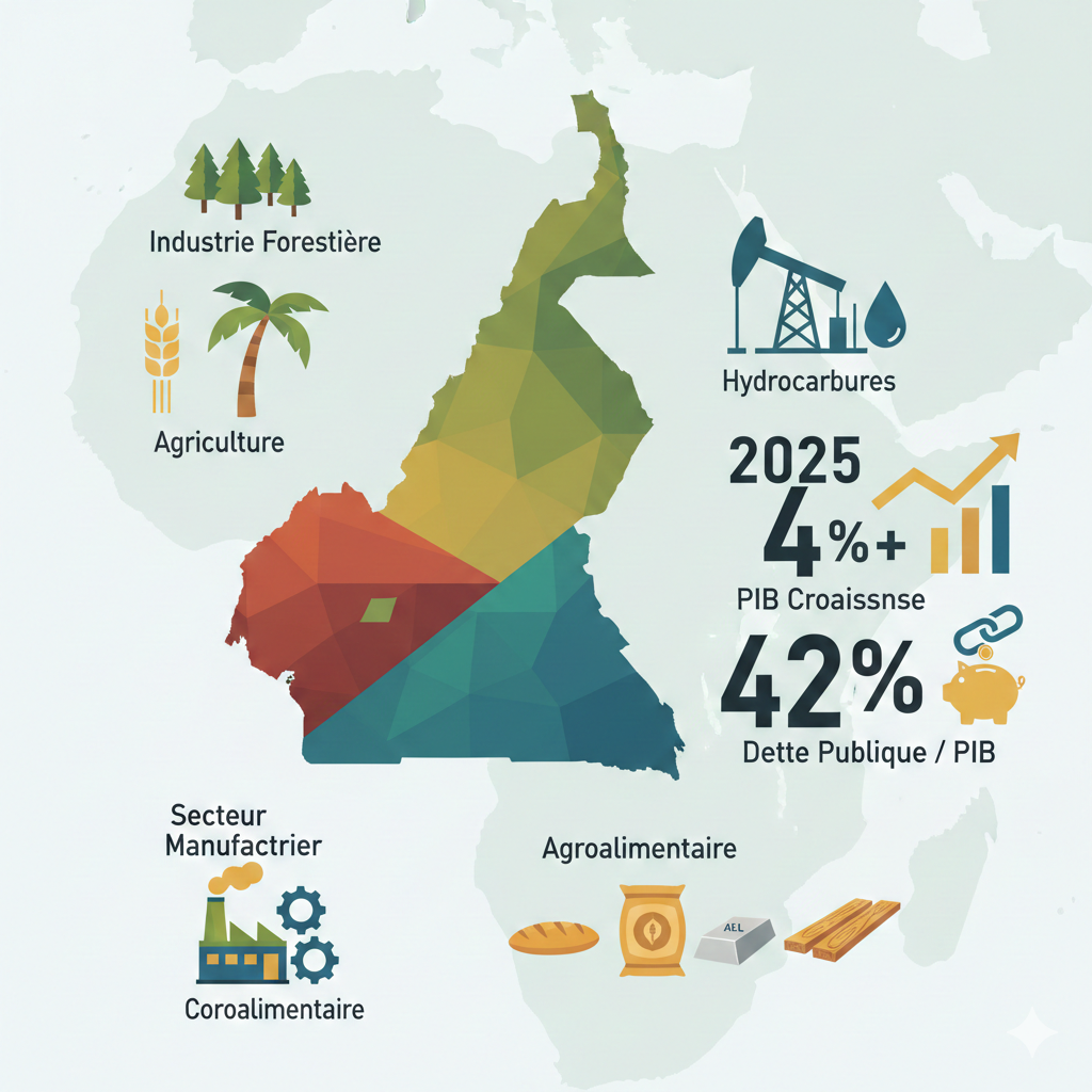 L’économie camerounaise est considérée comme la plus diversifiée d’Afrique centrale. Elle s’appuie sur une palette d’activités variées : agriculture, industrie forestière, hydrocarbures et un secteur manufacturier (agroalimentaire, ciment, aluminium, bois).